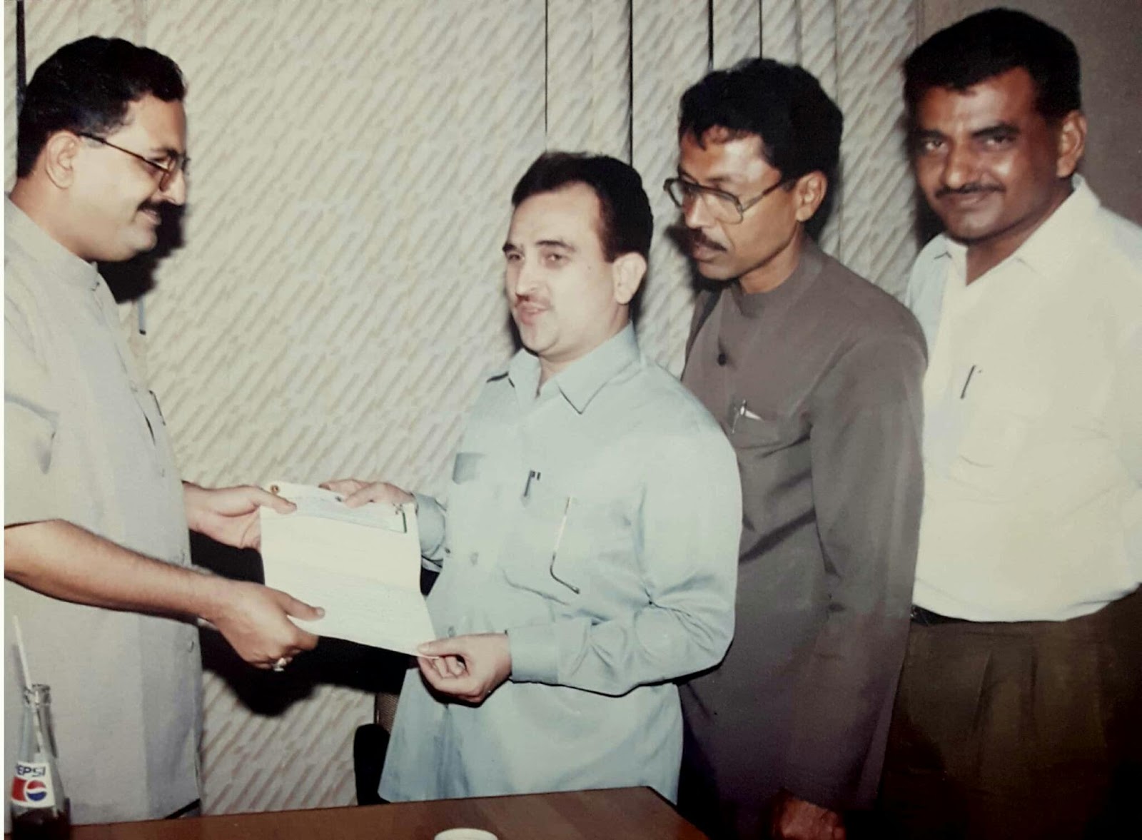 Old memory: Mr. F H Rizvi and Mr. Akil Vali Mohammed and Mr. Wasim Siddique visited BMC HO and handing over the memorandum to Chairman Education Committee of Greater Mumbai Municipal Corporation Mr. M I Patel for repairing and maintenance of Municipal school buildings at Malvani area. Malad West Mumbai